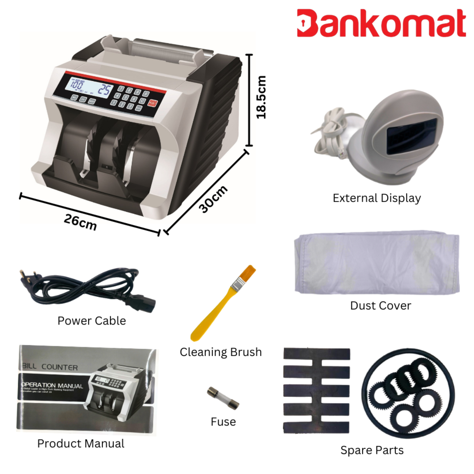 ✅ [ PACKING CONTENTS]- 1x Money Counter, 1x Power Cord, 1x User Manual, 1x Cleaning Brush.